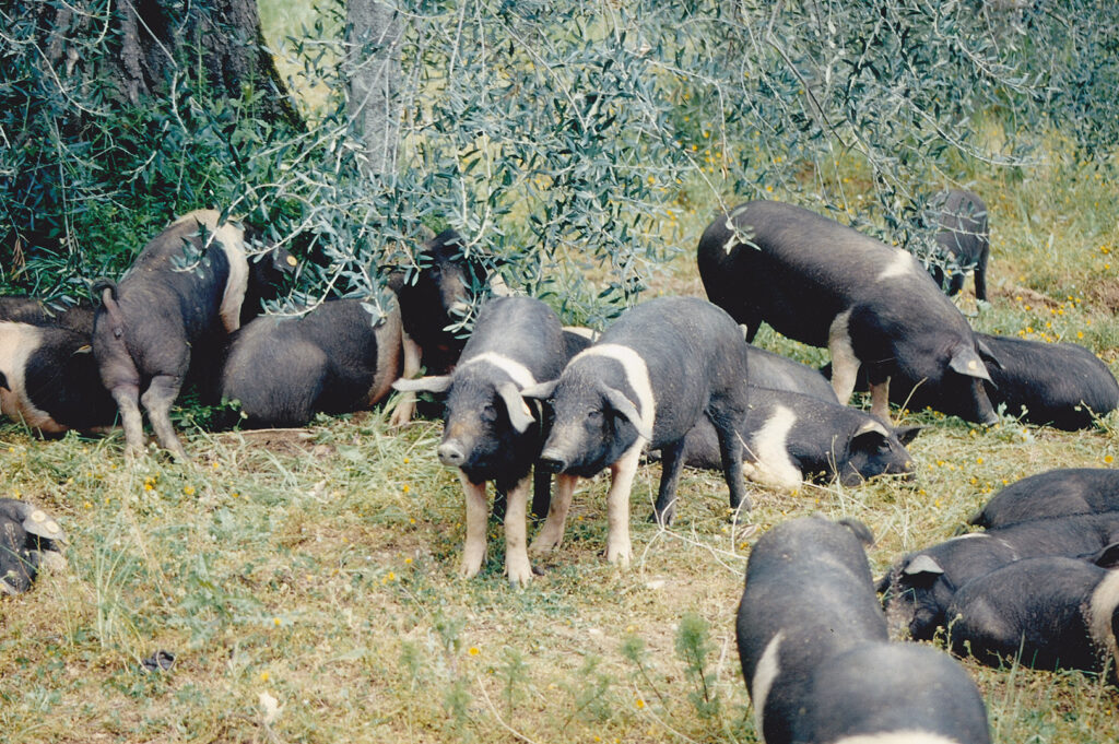 Nel cuore dell’azienda, l’allevamento semibrado di Cinta Senese e Grigio Toscano rappresenta una parte fondamentale della nostra attività. I nostri suini sono allevati in libertà, nutrendosi di grano e foraggi coltivati in azienda, e trasformati in salumi artigianali privi di conservanti. Ogni prodotto è il risultato di un impegno costante per garantire il benessere animale e la qualità del prodotto finale.
